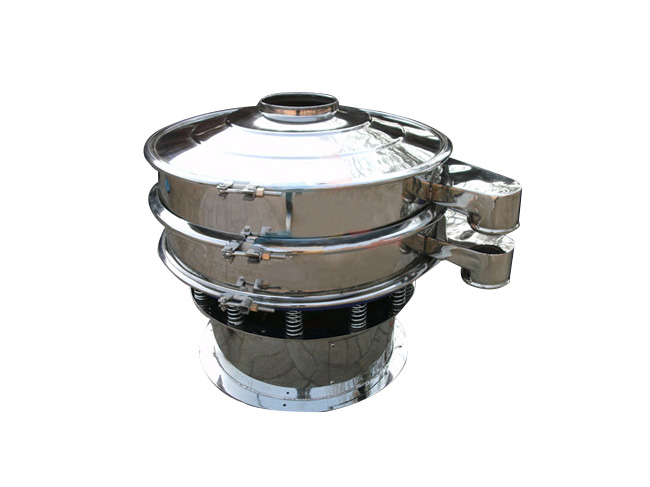 旋振篩(圓形振動篩)由立式振動電機作激振源,因為其上下端重錘安裝在發動軸兩側,使電機的旋轉運動轉變為垂直、水平、傾斜的三次元運動。  旋振篩產品特點:  設計精巧,耐用,適合任何粉類以及粘性液體的篩分。  操作簡單,換網方便,易于清洗?! 『Y網無阻塞,粉末無飛揚?! ‰s質以及粗料自動排出,并且可以與給料設備、輸送設備配套使用,處理量大,生產效率高?! 〕叽缧?,節省空間,易于移動?! ∫子陴B護,可單層或多層使用。  篩網設計合理耐用,換網只需3-5分鐘。  篩網可達5層,篩分出6種不同顆粒大小的物料